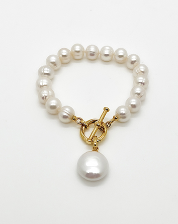 “We want to make a unique bracelet using the T Bar and what could be even more unique to have a Coin Baroque Pearl enhancer on the T Bar. Each Coin Baroque is uniquely different. This bracelet will be as original as you are”