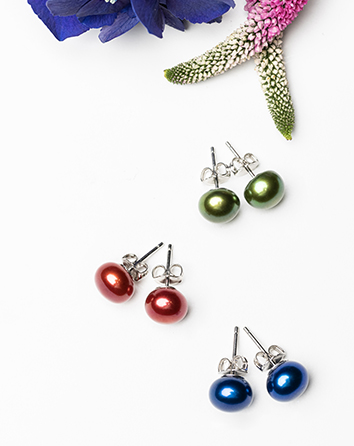 Inspired by the colours of precious stones Set of 3 Pearl studs Ruby Red, Sapphire Blue, Emerald Green Click on image for more details