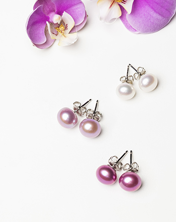 Orchid Lovers Set of 3 Pearl studs. Sterling Silver White, Lilac, Orchid Click on image for more details